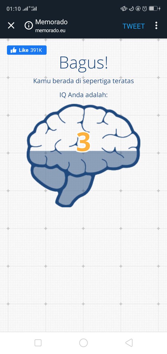 Jun 05, 2020 · tes iq memorado terdiri dari 18 soal/pertanyaan yang harus kamu jawab dengan cepat. If you turn your left glove inside out, it will fit your right hand. Which animal is the odd one out. 20 questions to find out! Get instant results with a certificate delivered by our academy. Iqtestacademy.org has been visited by 10k+ users in the past month Find visit today and find more results. I break down the concepts and use images to help you understan. We rank your applicants according to test scores certified by our experts. Average iq score is 100. We have prepared a iq test for you! Search a wide range of information from across the web with quickresultsnow.com. Get instant results with a certificate delivered by our academy.